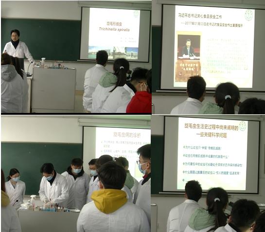民以食为天,食以安为先,在中国共产党领导下,为确保老百姓“舌尖上的安全”,中国在防治旋毛虫等食源性寄生虫病方面下了很大气力并取得显著的成绩,是中国公共卫生成就的典范。杨教授结合学科文化特点,在课堂教学过程中,围绕着教学目标,巧妙融入思想政治教育元素和目的,通过理论精讲、实验操作、交流互动、思想交锋等多种方法及手段阐述旋毛虫引起的危害为何如此严重以及旋毛虫病在临床诊断中为何极易被误诊?而中国人民在党的领导下防控旋毛虫病等食源性寄生虫病凝练了哪些 “中国经验和智慧”,以保证广大人民群众吃得放心、安心。