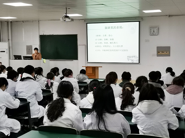 3月23日下午,应2019级临床医学本科同学的要求,欧冠官网特邀蚌埠医学院第一附属医院手术室李梅春、王宁两位老师在F座112教室为学生开展了《意外面前你就是救世主-全民普及心肺复苏术(CPR)讲座》,90余名师生参加了讲座。本次活动得到了护理学院的大力支持。