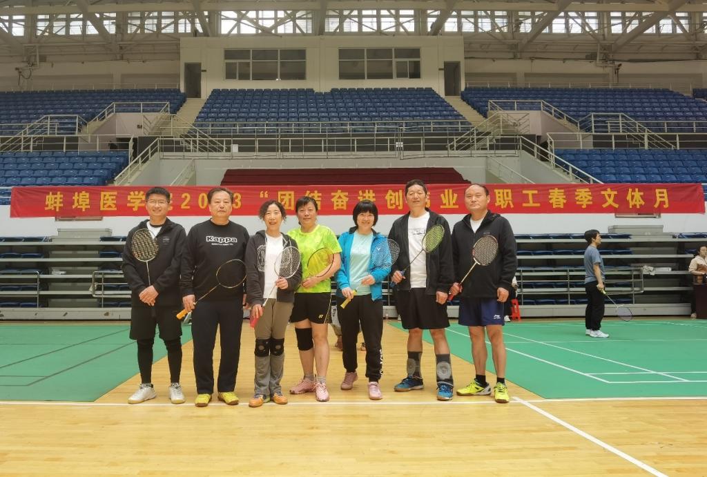 4月22-23日,蚌埠医学院2023年“团结奋进创伟业”春季教职工羽毛球团体赛在龙湖体育馆举行,我院代表队经过层层角逐、过关斩将,最终以绝对优势摘得团体赛的桂冠。
