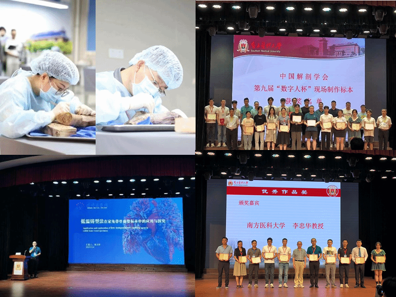 在标本制作比赛中,陆进和陈云帆老师凭借精湛的技术和稳定的发挥,制作出高质量的标本,分别荣获了优秀奖。祖文轩老师的论文《低温铸型法在家兔带骨血管标本中的应用与探究》荣获优秀论文奖,并受邀在大会上进行了精彩的汇报。