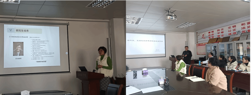 严海芹博士从科研工作开展角度分享了上交医免疫所浓厚的科研氛围和灵活的学术交流方式。严博士还从学生培养角度重点介绍了上交医研究生教育的课程设置和研究生培养过程的良好做法,为我院研究生培养提供了宝贵经验。李成喜从校园文化、学术氛围、交流培训等方面对上交医进行了详细介绍,重点分享了他在课题组参与的科研项目进展情况。两位博士都对上交医的老师在研修过程中给予的无私而热心的指导和帮助表达了感谢。参会老师与两位博士围绕教师去上交医进修的具体政策及研修中面临的困难等方面进行了交流。