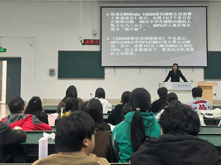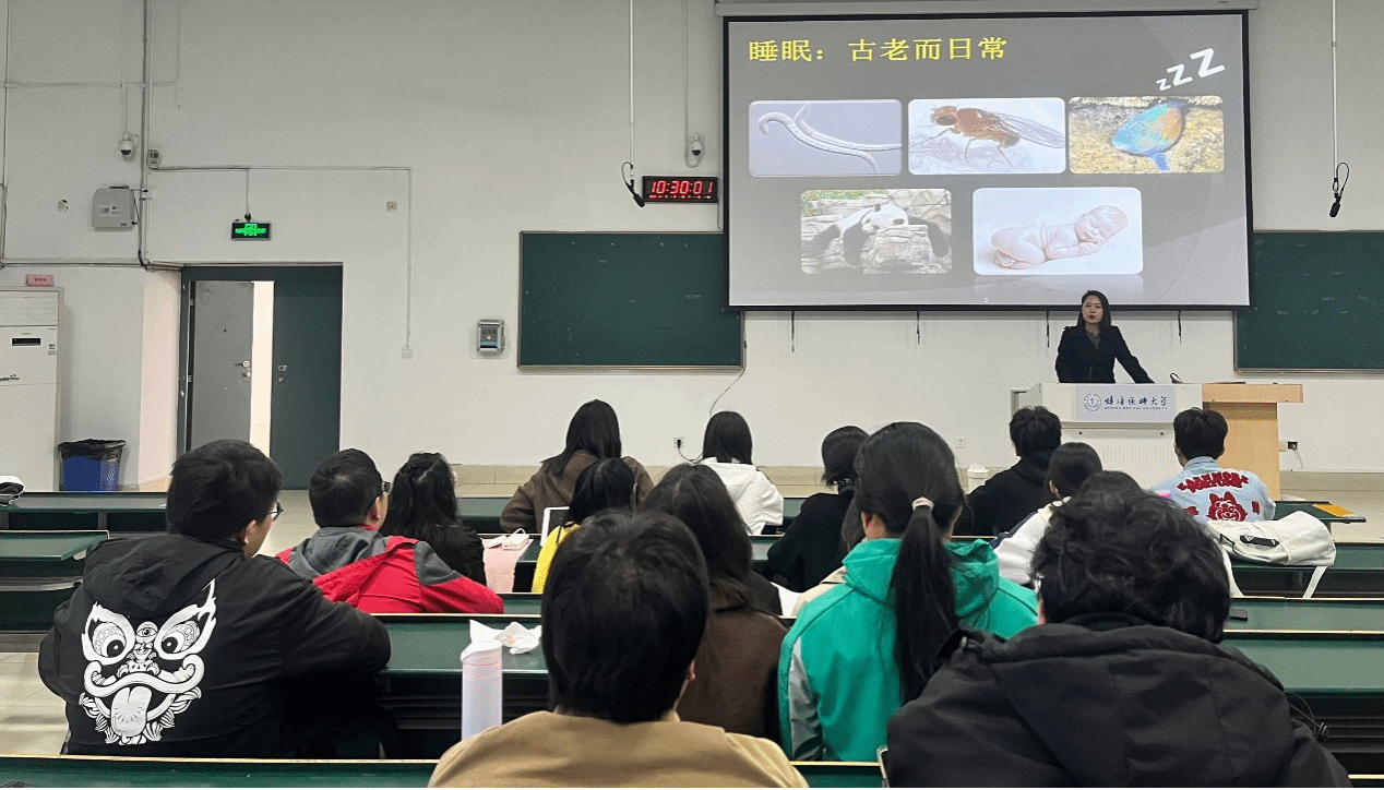 本次授课内容为《情绪、抑郁、焦虑》,李姝婧围绕睡眠的时相、类型、生理意义、时相的周期性交替及睡眠-觉醒时相解析等教学内容展开讲解,理论能联系实际加强教学互动与讨论。李教授充分挖掘专业内容背后蕴含的育人元素,以科学家经意外的实验发现“控制睡眠昼夜节律分子机制”获取诺贝尔生理学奖为例,倡导学习科学家的奉献和探索精神,增强脑科学研究的好奇心和求知欲,投身脑科学研究。同时以文献摘要阅读等方式介绍睡眠与肥胖、抑郁症、焦虑症、中风、高血压、学习记忆等疾病密切相关,在初步培养学生科学素养的同时,让学生合理安排学习工作娱乐的时间,保证睡眠时长,增加睡眠质量,关心学生身心健康。