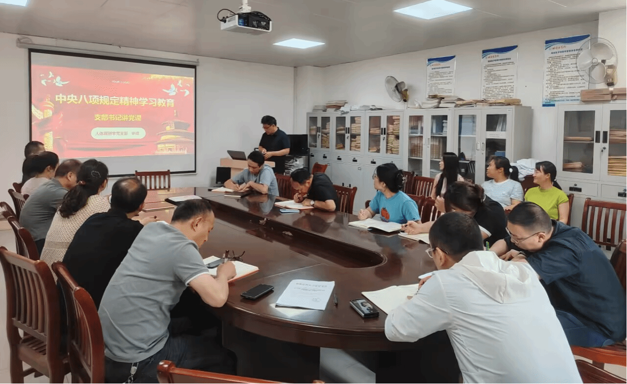 5月30日上午,为进一步深入贯彻中央八项规定精神学习教育,强化党员、干部纪律和规矩意识,人体解剖学党支部开展了中央八项规定精神学习教育暨支部书记讲党课活动,全体党员及教职工参加学习。
